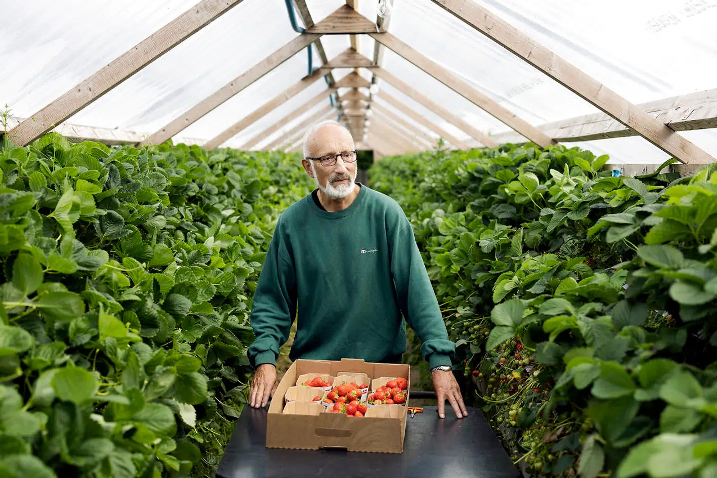 »Man kan få mange ideer, mens sådan nogle haller bliver rengjort,« siger Ejner, der begynder at fortælle om, hvordan han ikke kunne bruge jordbærsorten sonata, som Thomsen anbefalede.