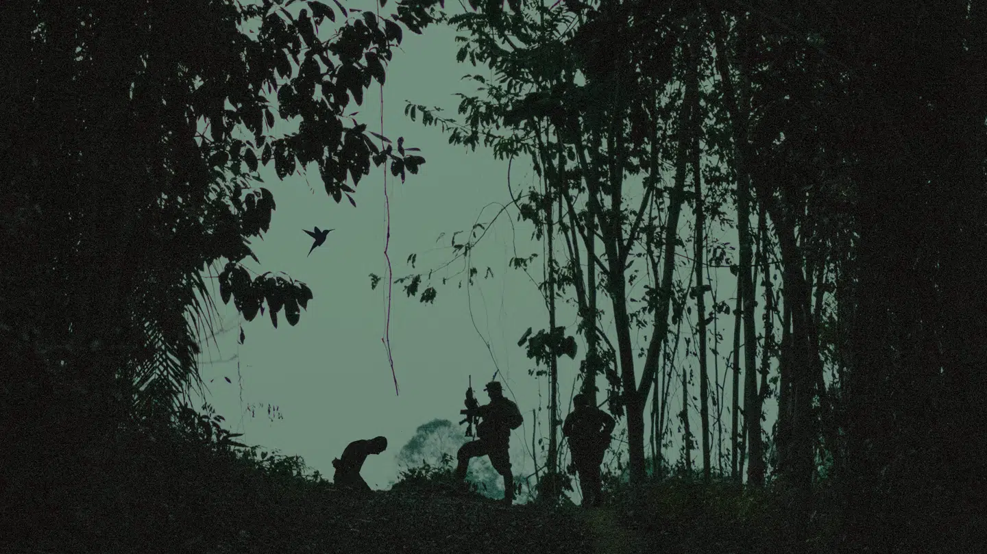 Landstedet er bevogtet af bevæbnede FARC-soldater. Andre gemmer sig rundtom på bjerget.