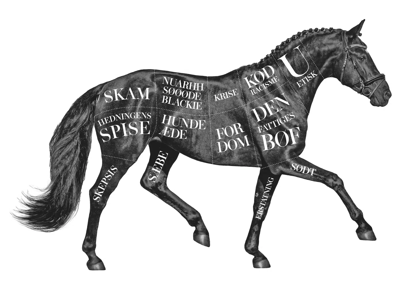 VI SKAL SELVFØLGELIG IKKE narres til at spise hest – det siger sig selv. Men hvorfor ikke bare gøre det frivilligt? Vores forfædre spiste den. Det ved vi fra hulemalerier. Og i bogen Om den danske Befolknings Fødemidler gennem Tiderne fra 1930 skriver forfatteren, Niels Siggaard, at hestens kød »i de ældste tider« var så højt estimeret, at det intet under var, at »hesten blev offerdyr. Til guderne var det kæreste ikke for godt. Hestekød blev en hofret ved offergilderne«.