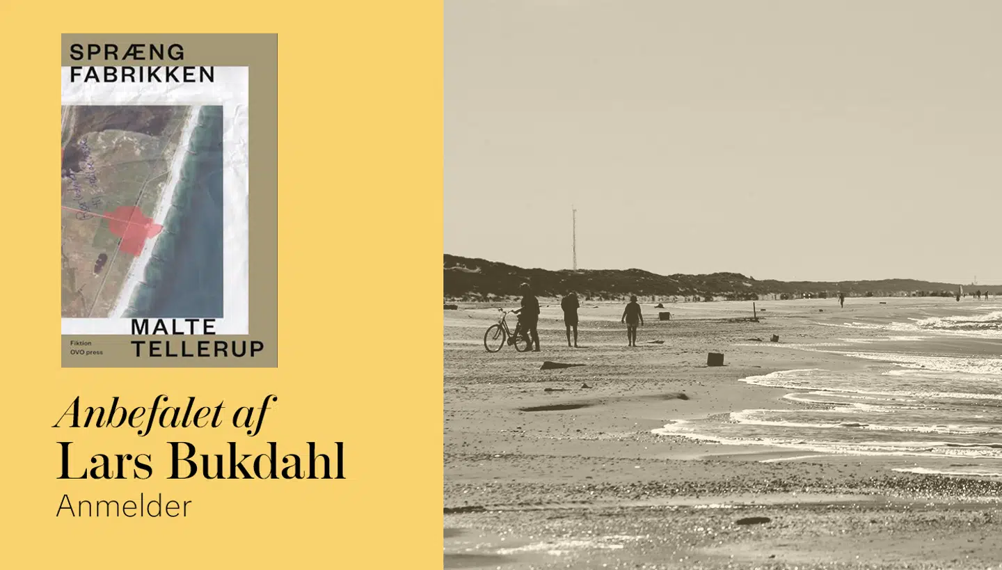 Malte Tellerups Spræng fabrikken er på nippet til at være en egentlig sabotageinstruks – bemærk imperativet i titlen; den hedder ikke »Fabrikken sprængt« – og denne 54 skarptskårne sider korte kortroman er lige til at skære sig på. Tre sympatiske unge mennesker planlægger og forbereder – med brutalt solidaritetsskabende, neglebidende suspense – og udfører en sabotage mod Cheminovas giftfabrik i Grindsted. Selvfølgelig skal den, som den korteste danske roman nogensinde, filmatiseres, men først og fremmest skal den læses. Med intenst præcis anfægtelse.