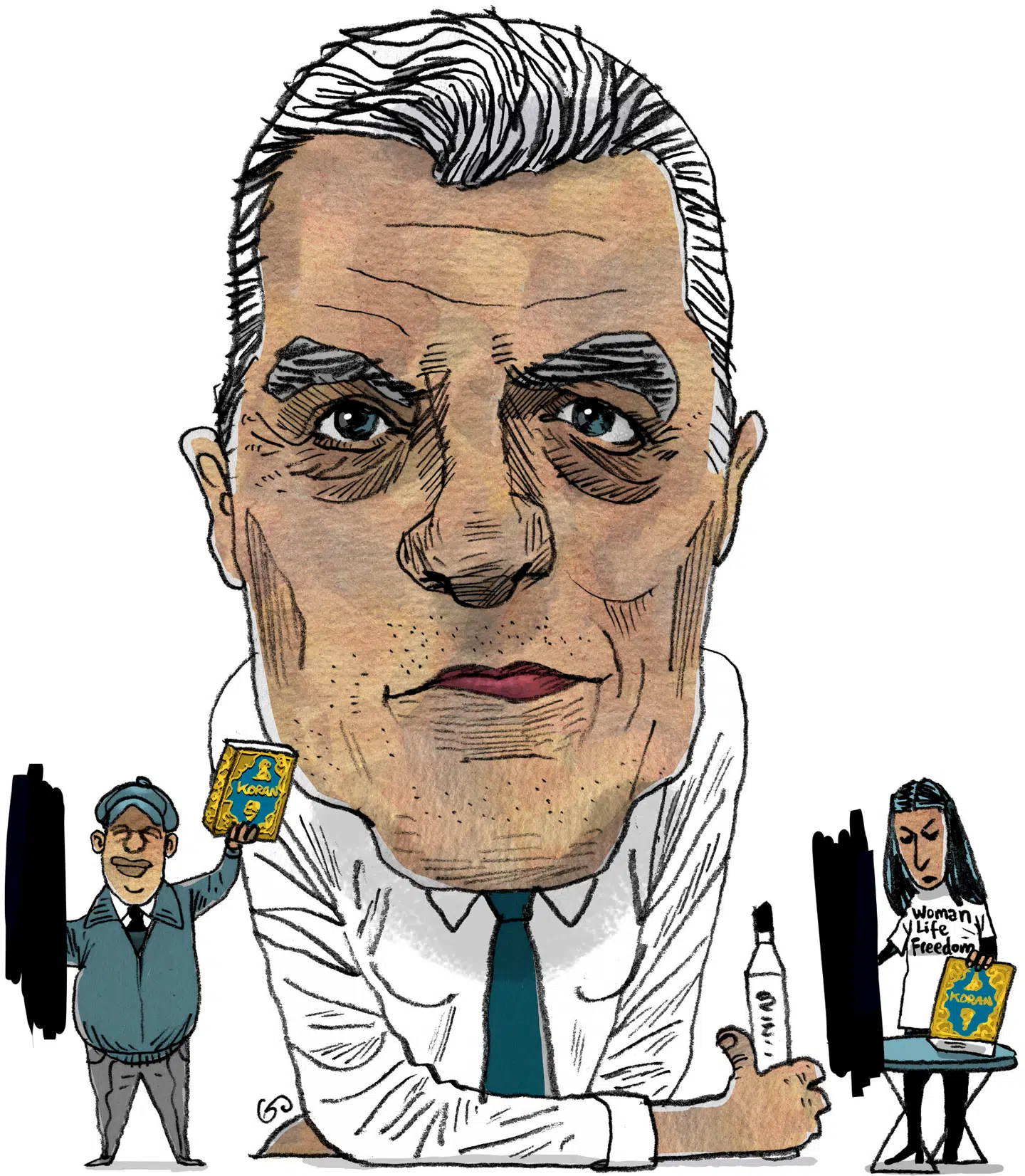 I et interview med Weekendavisen (WA #05) foreslår politikeren, at jeg, der har revet Koranen på et rivejern i protest mod Islams kvindeundertrykkelse, finder på noget andet og for eksempel afbilleder ayatollah Khomeini, der dyrker sex med en anden mand.