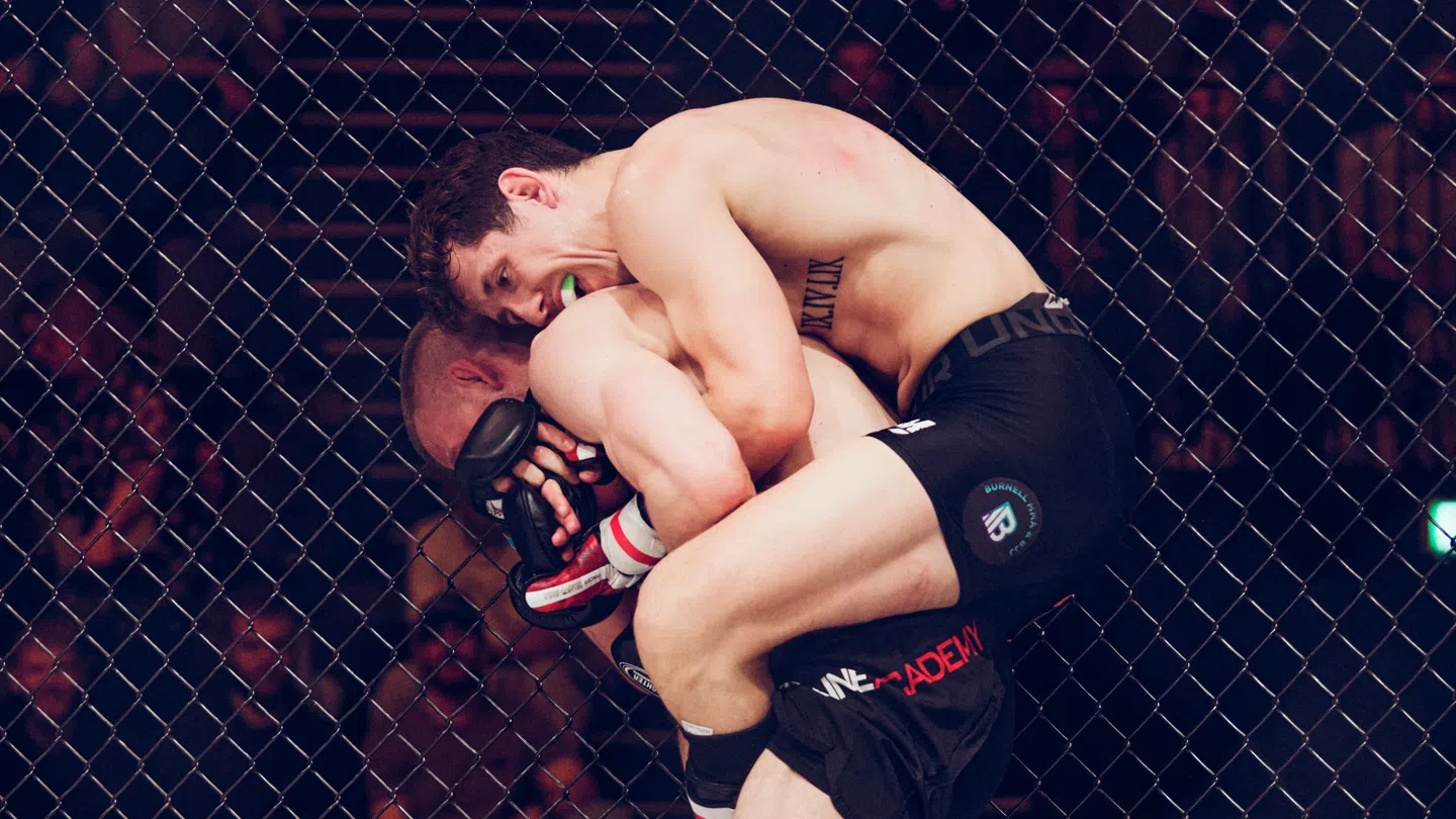 57 minutter før Mark Damstedt skal i buret, bliver der stille. Stemmer og lyde forstummer. Opvarmningsrummet, der for et øjeblik siden var et virvar af kæmpere, trænere og hangarounds, ligger tyst hen som en gymnastiksal efter skoletid. Nu høres kun trænerens sagte formaninger.