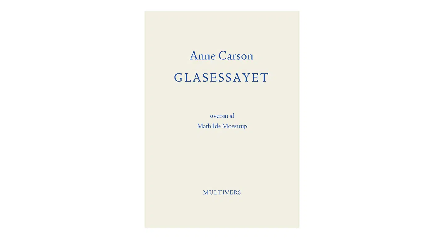 Anne Carson kan beskyldes for meget, men ikke for at være lettilgængelig. Den canadiske digter, der er uddannet filolog, slynger helst om sig med referencer fra Herodot til Hölderlin. Men i Glasessayet (1995) – et essay på vers, der nu foreligger på dansk – er det, som om Carter besinder sig, og det lykkes hende at indhegne sin mest elegante skrift. I sin anmeldelse skriver Emil Leth Beiter om forfatterens sprog, at »det er krystalklart og præcist, og som læser bliver man aldrig tabt«.