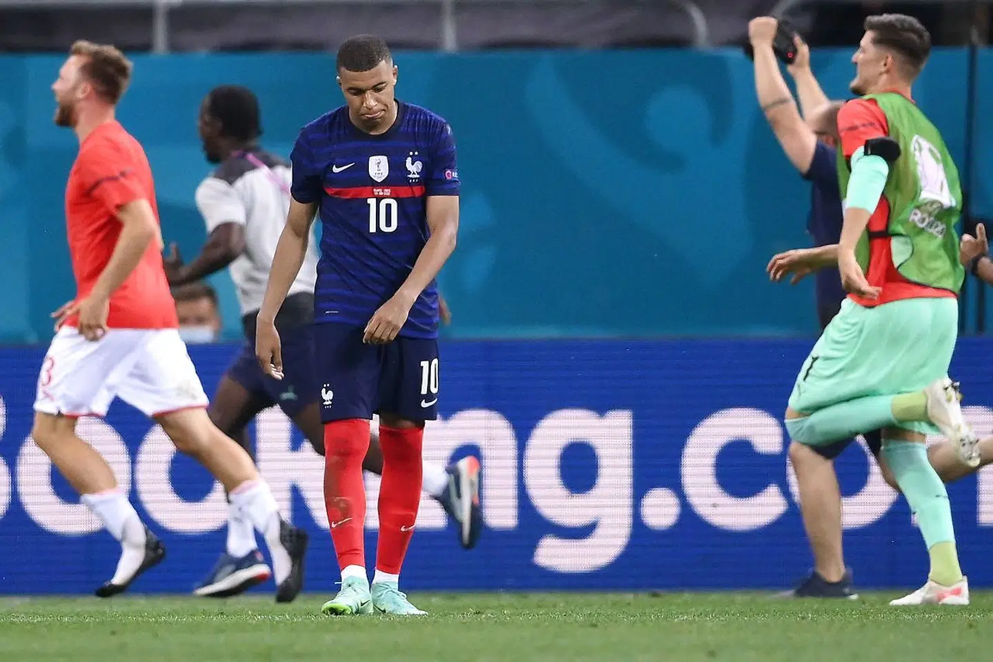Hvad angriberen ikke vidste var, at belgierne i samme øjeblik mistede bolden på kanten af feltet til Marco Verratti, der fandt en af opgørets store spillere, Nicolò Barella, som resolut sendte en vinklet afslutning forbi Thibaut Courtois i det belgiske mål. Italiensk føring, og Immobile, godt gemt i sine egne hænder, fornemmede jublen. Mål …? Han kiggede op, rejste sig på det ene knæ, så sig lidt nervøst omkring og begyndte derpå at lunte over mod sine fejrende holdkammerater. Hans lidelser var pludselig ovre.