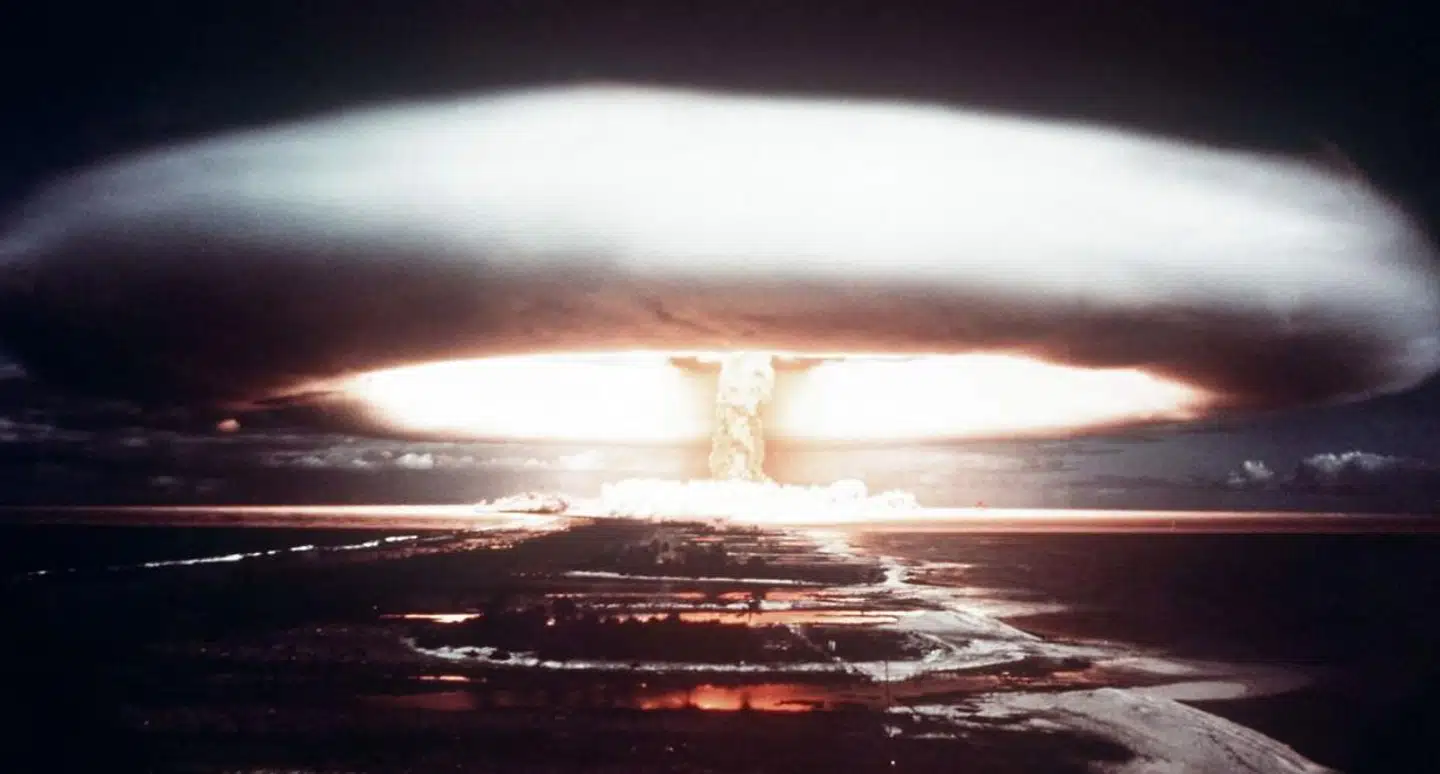 En fransk atombombe-prøvesprængning på øen Mururoa i det sydlige Stillehavet i 1971. AFP PHOTO