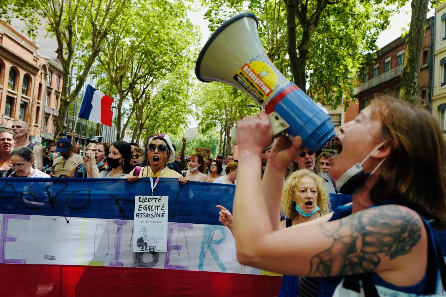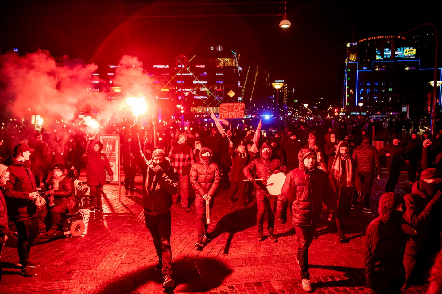 Det var Men In Black, der demonstrerede, beskyttet af politiet. Jeg var lidt overrasket over det store fremmøde, selvsamme uge som brugen af epidemiloven ellers var afblæst. Men det syntes ikke at dæmpe de forsamlede anti-vaxxere, snarere tværtimod, måske fejrede de det som en sejr. Jeg trådte nærmere for at studere det fascinerende fænomen. De fleste plakater var i samme layout, sorte med hvid tekst, tydeligvis produceret samme sted, og vidnede om en organisation med dygtig styring. Hvem mon det var? At man var i sort, kan næppe overraske nogen, men forskellene mellem de demonstrerende var slående. Unge fyre i mere eller mindre konsekvent kampuniform blandede sig med ældre hippier i læderjakker, der så ud, som om de kom direkte fra Christiania. Selv i læderjakke kunne jeg uden videre have sluttet mig til de larmende vaccineskeptikere, og jeg fik da også opmuntrende tilråb fra demonstranterne om at komme med.