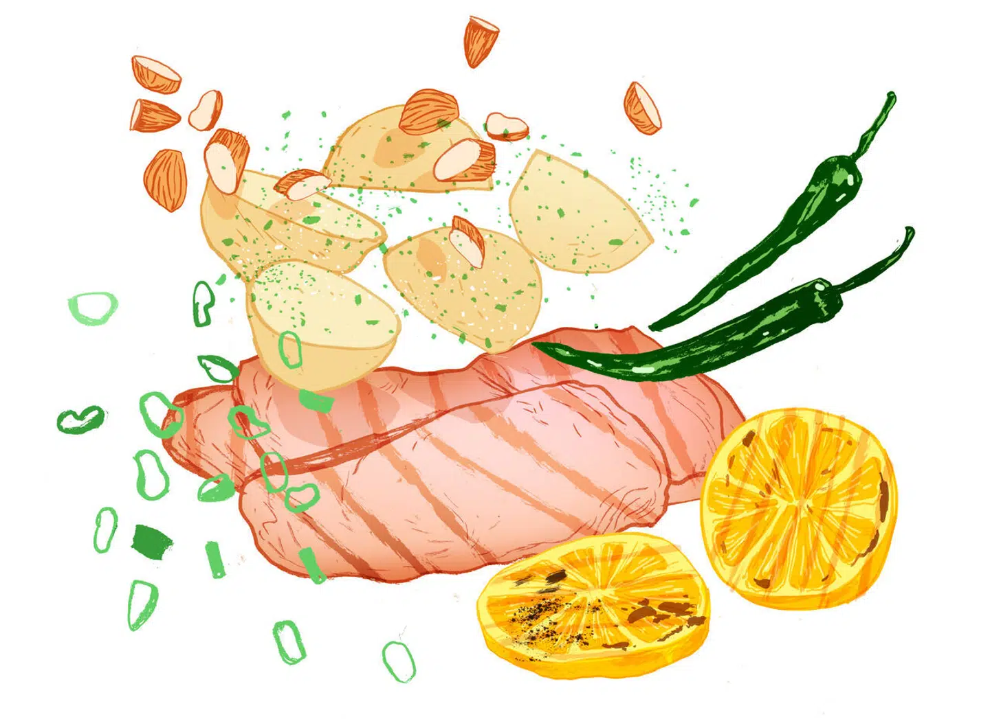 Her: en brainstorm på en brunch 2.0 til efterårsferien. Hvis man er vanvittig og hader fritid, kan man kaste sig ud i samtlige retter, eller De kan vælge hist og pist og supplere med egne favoritter. Det må gerne være hyggeligt rodet: store sautérpander midt på bordet og mindre anretninger omkring, så alle kan række til på kryds og tværs. Tæppebomb med hakkede krydderurter og citron. Og lad avisen ligge og flyde.