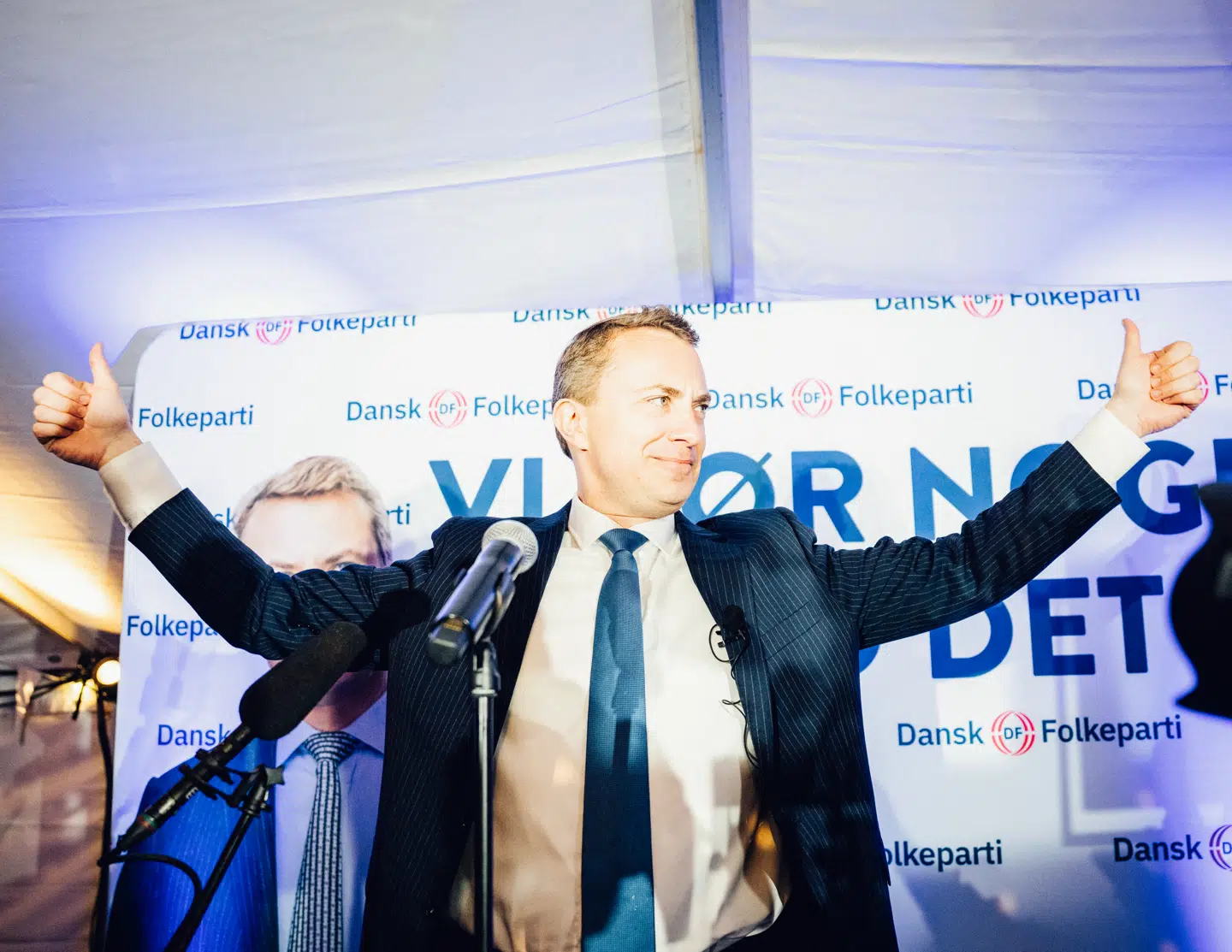 Allerede fra valgfestens begyndelse var der højt humør mellem de magentaoplyste betonvægge i det gamle pakhus. Dj'en, Mike, havde på forhånd fået at vide, at han skulle spille op til fest, og han havde endda fået udleveret et usb-stik med en særlig sang, som Lars Løkke skulle ankomme til.