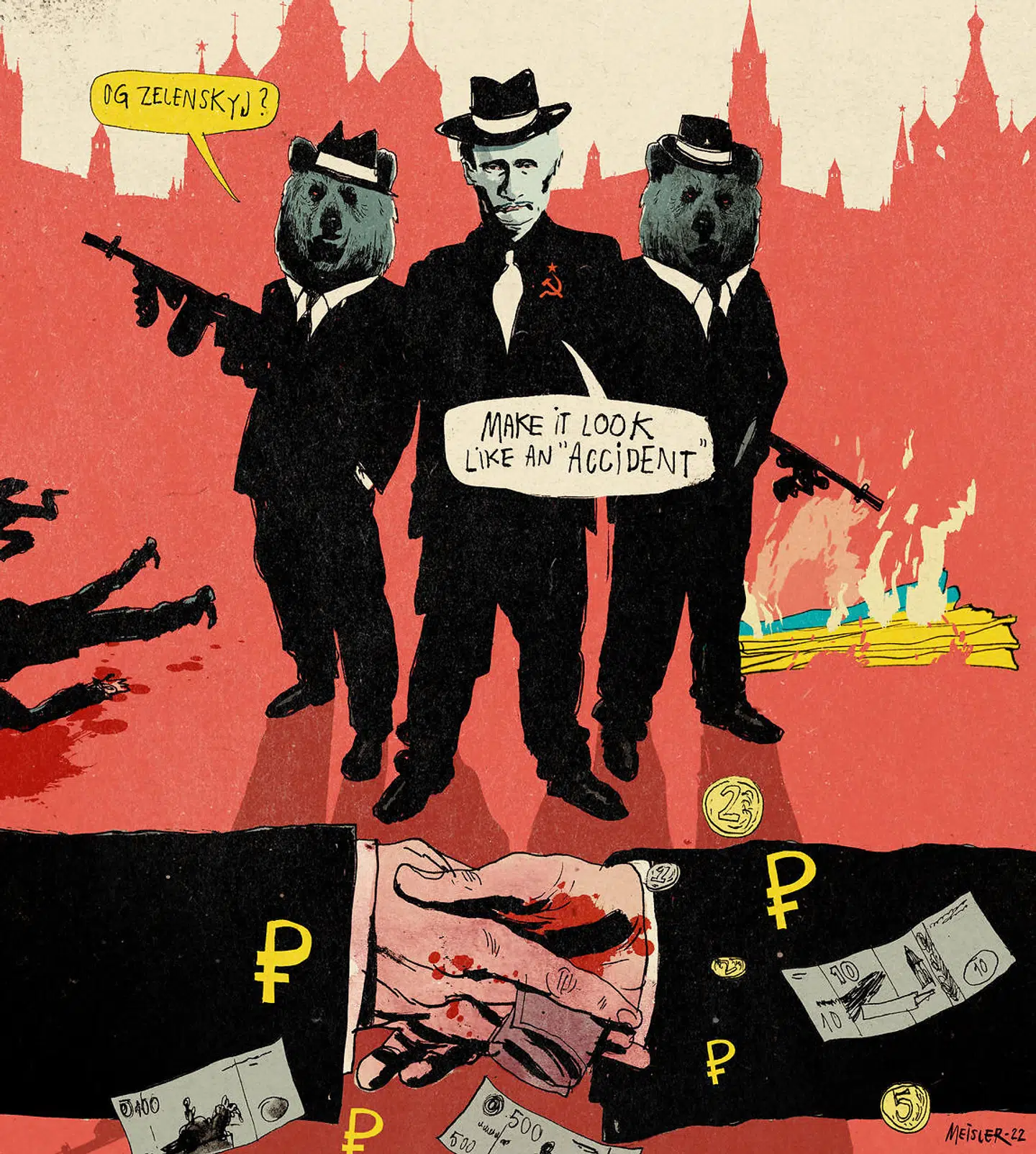 ENHVER MODSTANDS STØRSTE fjende i en diktaturstat er den officielle propaganda, der som en euforiserende gas trænger ind og bedøver befolkningen. Da tv-journalisten Marina Ovsjannikova viste sit skilt på russisk stats-tv, var det et modigt forsøg på at nå ud til de mange russere, der lader Putin tænke for sig. Og Putins tale til den jublende folkemængde for få dage siden på det mægtige Luzjniki stadion i Moskva mundede i bund og grund ud i det samme spørgsmål, som Goebbels stillede tyskerne under Anden Verdenskrig: Vil I den totale krig? Og de bedøvede folkemassers svar var de samme bragende ovationer: Ja!